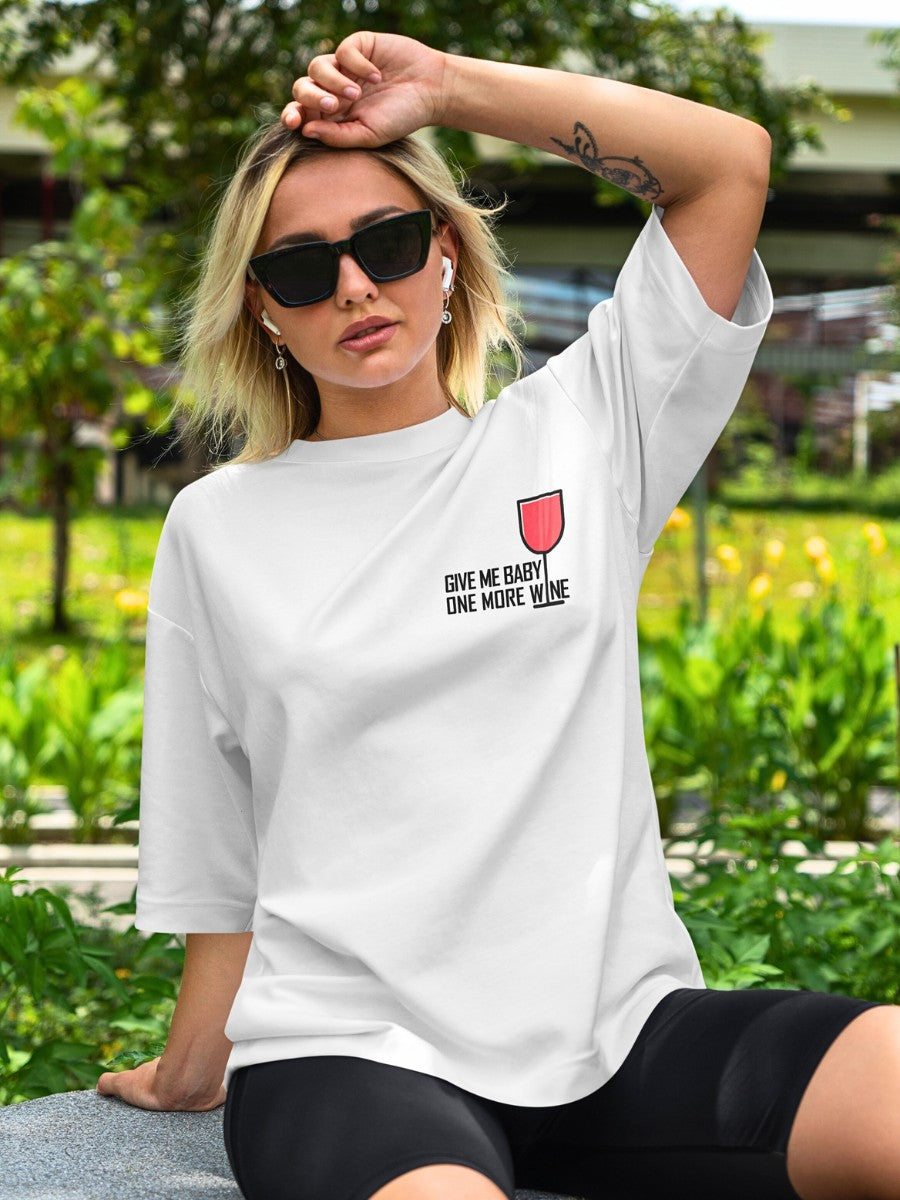 Women's Oversized Classic Fit Tee | Give Me Baby One More Wine